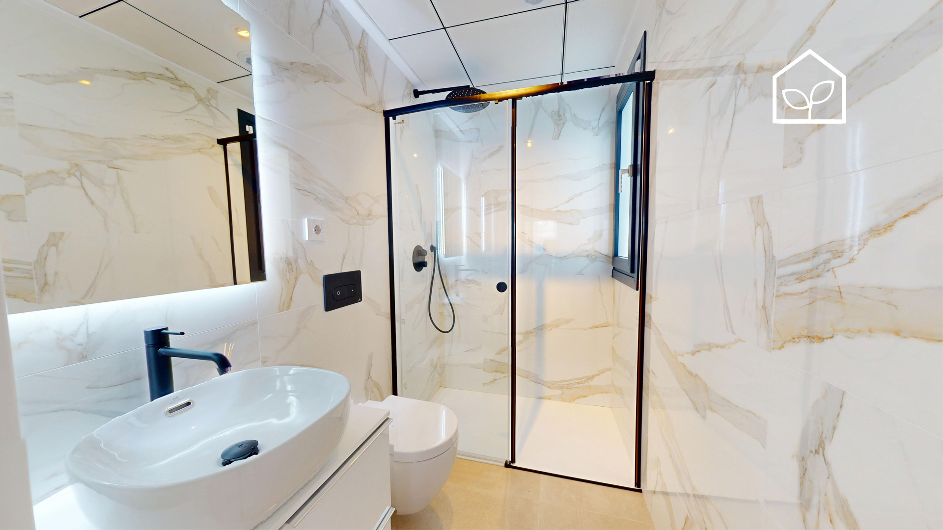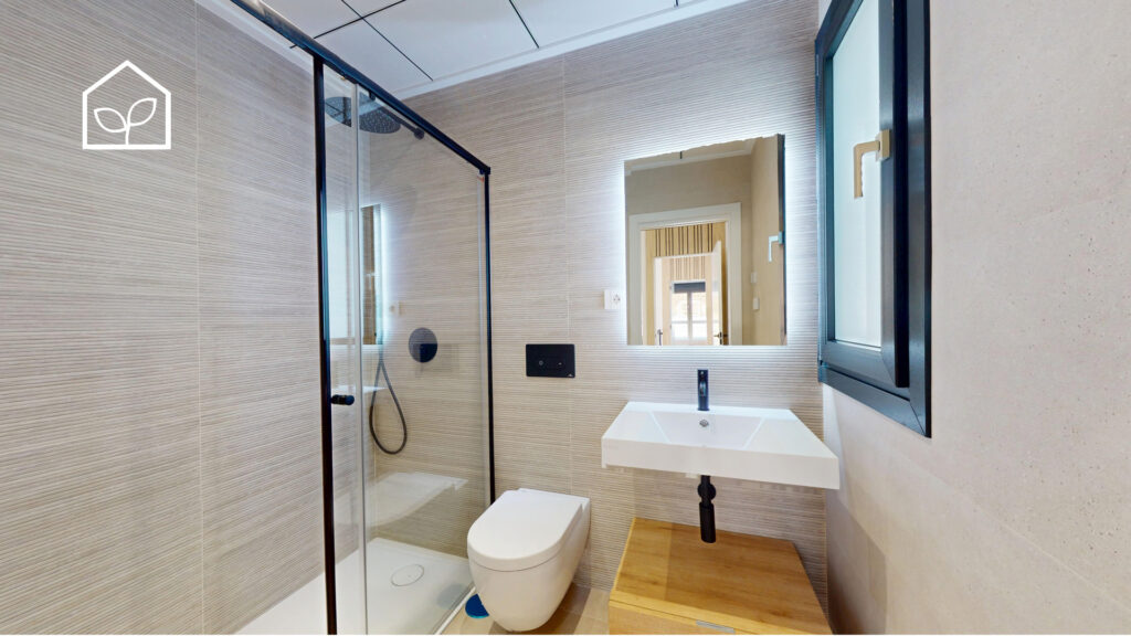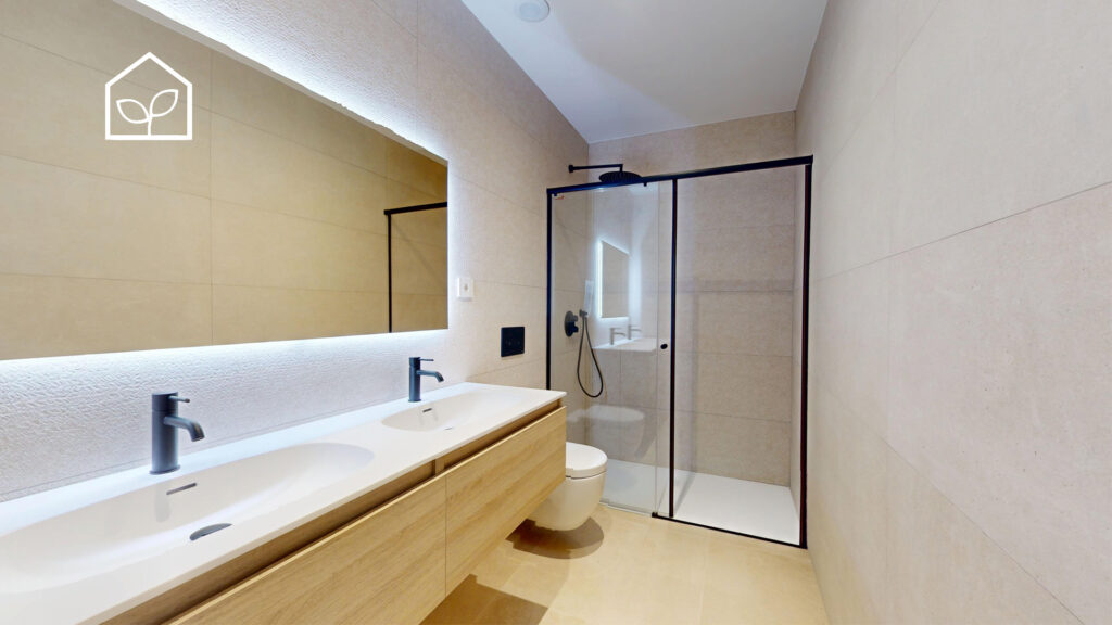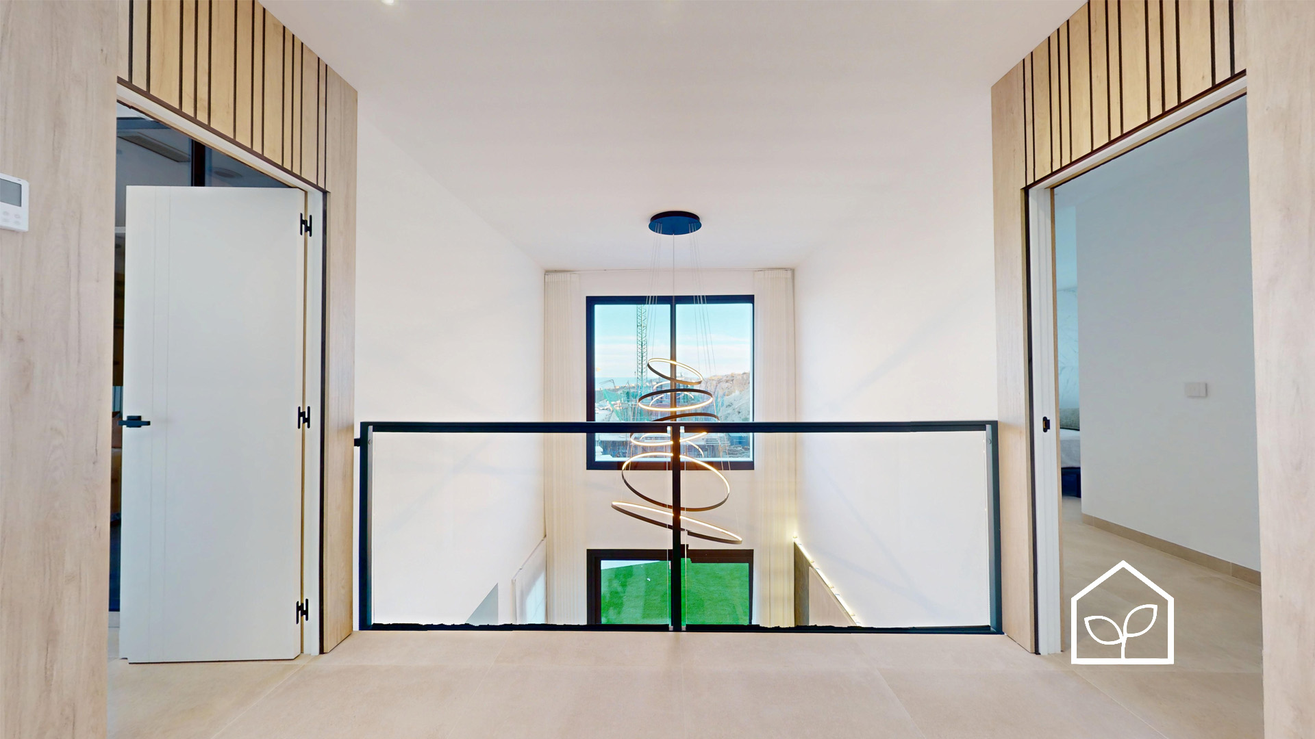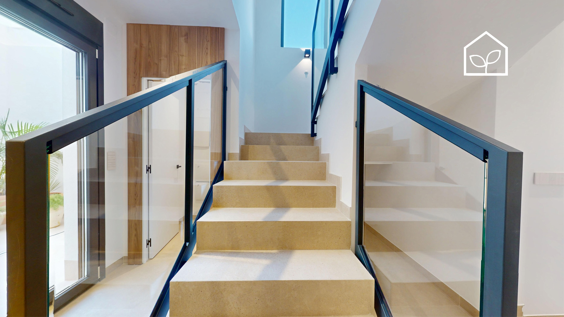 De indvendige rum er organiseret efter princippet om åben planløsning med en glidende overgang mellem boligens interiør og de udendørs opholdszoner. Store panoramiske skydedørspartier i glas skaber en visuel og funktionel forbindelse mellem opholdsarealerne og terrasserne, haven og poolområdet, hvilket forstærker oplevelsen af rumlig sammenhæng og naturligt lysindfald. Villaernes eksteriør er projekteret som en fuldgyldig forlængelse af boligen: haven, de rummelige terrasser og tagsolariumet danner et flerniveau system af udendørs arealer til afslapning og privatliv. Swimmingpoolen og den tilstødende terrasse udgør grundens centrale komposition og fremstår som et nøgleelement i den middelhavske livsstil. Interiøret er udformet i en moderne minimalistisk æstetik med fokus på funktionalitet, rene linjer og en neutral materialepalet. Planløsningen er organiseret med en tydelig opdeling mellem dagzone og natzone, hvilket sikrer en komfortabel boligdisponering. Badeværelserne er udført i en moderne arkitektonisk stil med storformat keramik, integrerede sanitetsløsninger og bruseafskærmninger i glas.