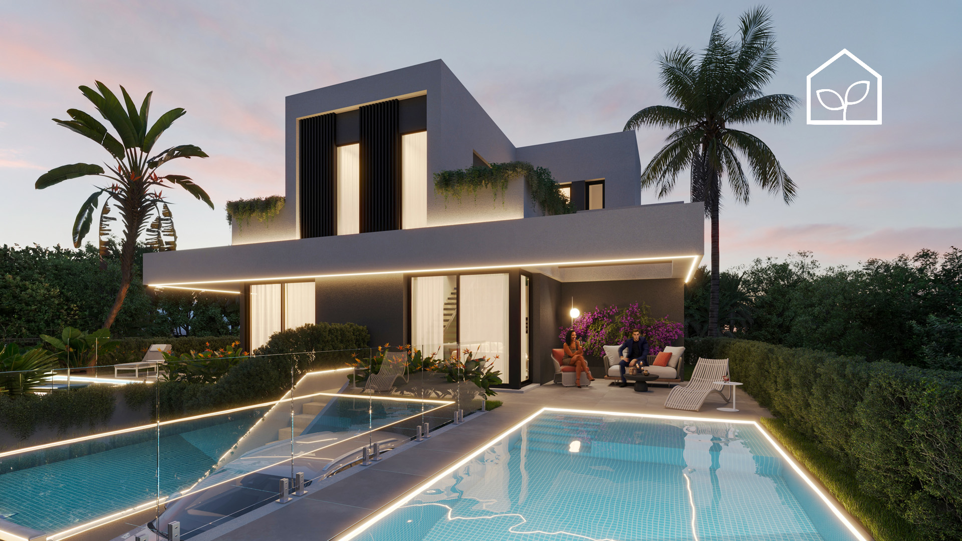 Die Architektur und Raumaufteilung sind auf maximalen Komfort und eine effiziente Flächennutzung ausgerichtet. Hochwertige Aluminiumfenster mit thermischer Trennung und energieeffizienter Verglasung gewährleisten eine hervorragende Wärme- und Schalldämmung. Die Innenräume sind mit moderner LED-Beleuchtung ausgestattet. Sicherheitseingangstür. Voll ausgestattete Küche mit Elektrogeräten. Badezimmer mit zeitgemäßer Ausstattung. In den Schlafzimmern integrierte Stauraumlösungen.