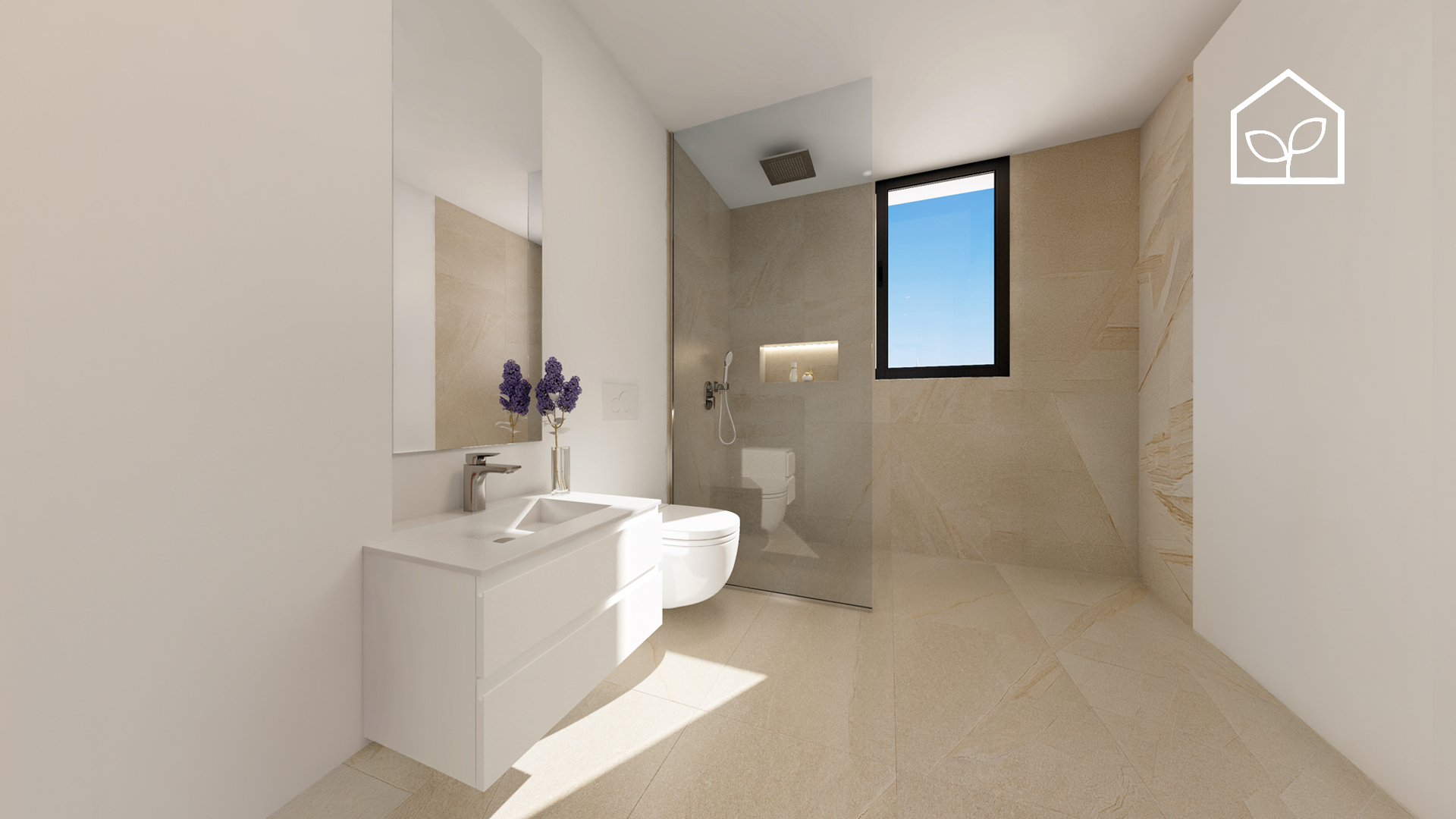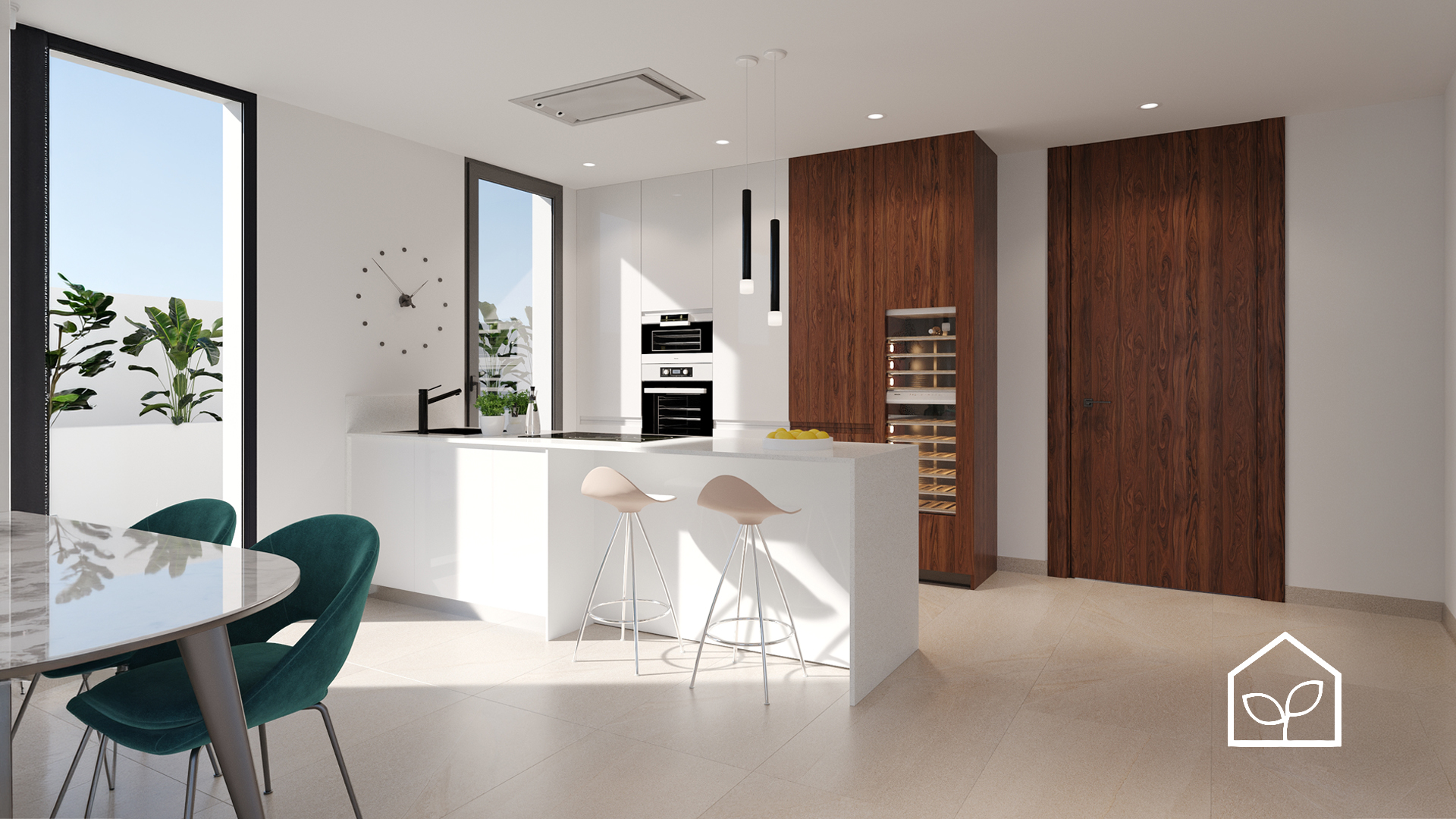 La arquitectura responde a una estética mediterránea contemporánea, con líneas limpias, volúmenes equilibrados y una clara apuesta por la luz natural. Los grandes ventanales de suelo a techo potencian la profundidad visual de los interiores y conectan de forma fluida los espacios interiores con terrazas y jardín. La cocina abierta se integra con naturalidad en la zona de día y actúa como punto de encuentro tanto para la vida cotidiana como para recibir invitados. Se entrega completamente equipada con electrodomésticos integrados de última generación y soluciones de almacenaje ergonómicas. Los baños están totalmente equipados, con zonas de ducha y mobiliario de diseño actual.